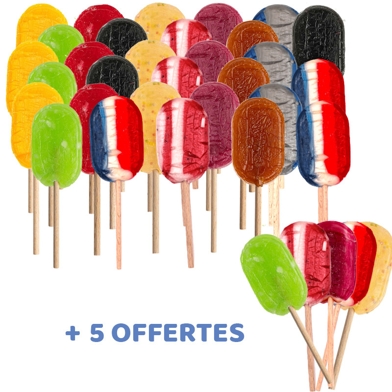 30 sucettes achetées + 5 offertesLes sucettes du Val André – Artisan confiseur depuis 1928